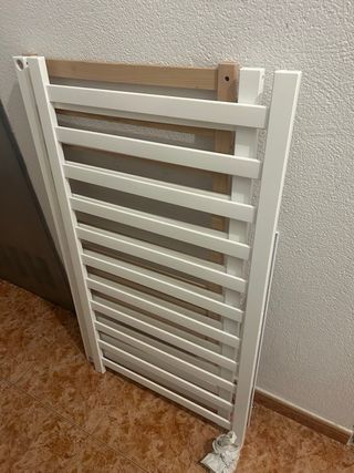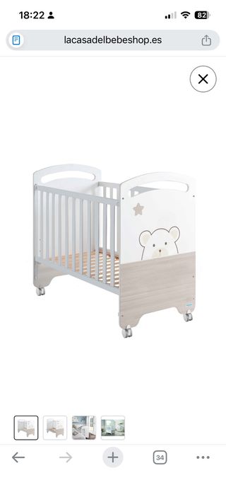 Cuna de la marca Mi Cuna con un tierno diseño de osito. - Estructura de madera blanca y detalles en color madera. - Decoración frontal con un osito y una estrella. - Laterales de barrotes blancos. - Base de somier de madera. tengo cuna montada esta desmontada como se veen las fotos , las ruedas no las tengo , se rompieron los agujeros donde va las ruedas ,vease las fotos 4y 5 , tengo el colchon tb pero tiene mancha , de los pequeńos .