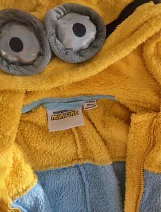 Disfraz de los personajes de Minions de Illumination. - Diseño amarillo y azul. - Material suave y cálido. - Talla 116 cm (aproximadamente 5-6 años).