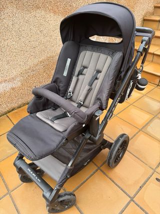 En perfecto estado siemplemente necesita una limpieza porque lleva años guardado en el trastero. Carro de bebé en color beige y negro. - Capota ajustable. - Interior acolchado. - Asas de transporte.