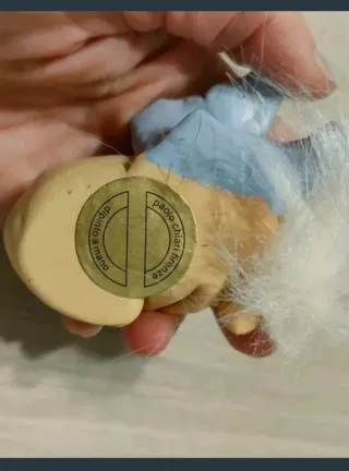 Preciosa figura de hada bebé, pintada a mano en Florencia. - Dipinto a mano (pintado a mano). - Paolo Chiari Firenze (artista y lugar). - Detalle de alas moradas