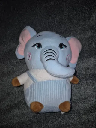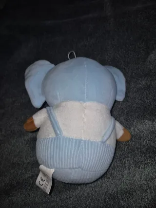 Adorable peluche de elefante de color azul, perfecto para los más pequeños. Suave y tierno. - Diseño de elefante. - Color azul con detalles en rosa y blanco. - Ropa de peto a rayas.