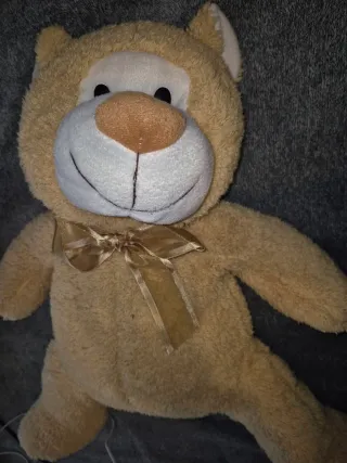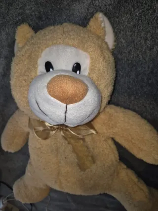 Adorable peluche de osito de peluche, perfecto para abrazar. Suave y tierno, con un encantador lazo dorado. - Color: beige. - Material: felpa. - Lazo decorativo: dorado.