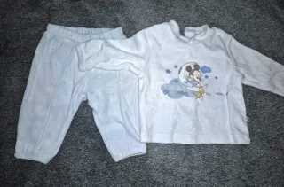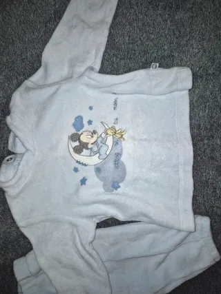 Conjunto de pijama para bebé con estampado de Mickey Mouse. - Pijama de dos piezas. - Diseño de Mickey Mouse sentado en la luna. - Tejido suave y cómodo.