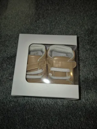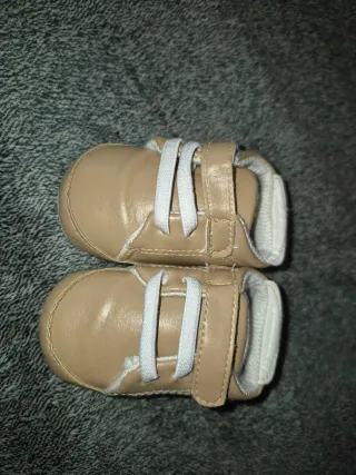 Preciosos zapatos para bebé en color camel, perfectos para los primeros pasos. - Material exterior de piel sintética. - Cierre con velcro y cordones decorativos. - Forro interior suave.