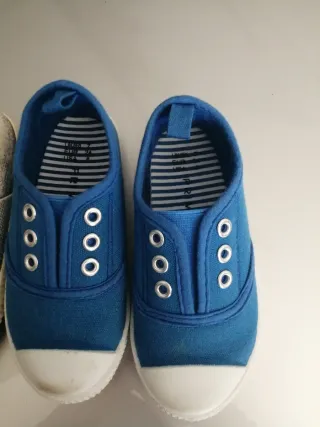 Zapatos infantiles de lona en color azul. Núm.24,poco uso. - Un par de zapatillas de lona azul marino Más ropa y calzado en mi perfil - Puntera reforzada. - Suela de goma blanca