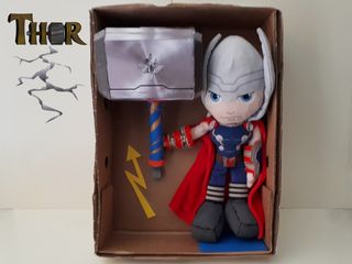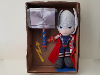 es peluche oficial de Thor de Marvel (Dios nórdico del trueno de Marvel Comics) de unos 25 cm Fabricado con felpa suave, diseñado para ser abrazable. va acompañado de una gran maza donde reside su poder