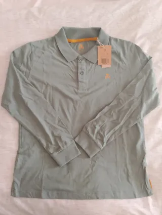 Polo de manga larga para niño de la marca Scalpers. Es una prenda nueva con etiqueta. - Color verde - Logo de la marca en naranja en el pecho. - Cuello tipo polo con botones. - Puños elásticos en las mangas.
