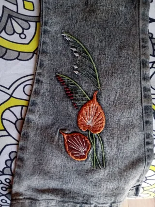 Pantalón con estampado divertido y colorido. - Talla 7/8. - Cintura elástica. - Diseño con estampado de hojas o pétalos.