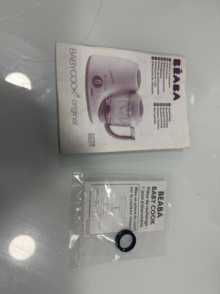 Robot de cocina BabyCook de Beaba. Cocina al vapor y tritura. Ideal para cocinar diariamente las comidas de tu bebe. En perfecto estado de uso y funcionamiento. Se le ha borrado el dibujo de indicador de vapor y triturado. - Color beis y granate. - Jarra cambiada. - Tapa y mezclador incluidos. - Instrucciones. Funda de transporte. Es resistente y protege el aparato. - Color gris. - Asa para facilitar el transporte. - Cierre de cremallera.