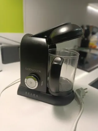 Robot de cocina Babycook de la marca Beaba, ideal para preparar comidas para bebés. Incluye varios accesorios para facilitar la preparación. Tiene su uso y hay que asegurar bien la jarra para evitar que gotee. - Robot de cocina Babycook Beaba. - Color gris y transparente. - Incluye dos recipientes para cocinas al vapor. - Incluye espátula. - Incluye cesta para cocinar al vapor. - Incluye accesorio para arroz y pasta.