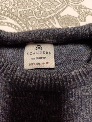 Jersey de manga larga con cuello redondo y tejido jaspeado en tono azul. Muy poco uso