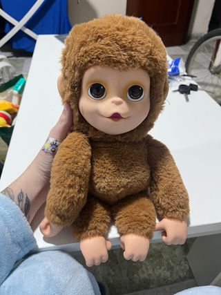 Mono de peluche interactivo de Little Live Pets. Este simpático mono está listo para jugar. - Peluche suave de color marrón. - Cara de plástico con detalles. - Brazos y piernas articulados.