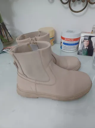 Botas de niña de la marca Zara en talla 31. Un calzado cómodo y versátil. - Color beige. - Cierre con cremallera lateral. - Diseño tipo botín.