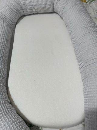 Nido reductor para bebé, ideal para crear un espacio seguro y acogedor. - Funda exterior de tejido waffle gris. - Colchoneta interior blanca.