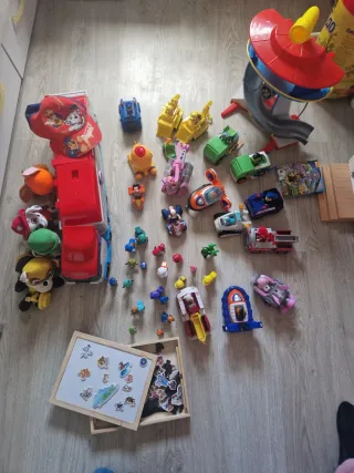Lote de juguetes de la Patrulla Canina. vehiculos, centro de mando, camion, peluches... Todo lo de la foto, precio por todo. - Incluye varios vehículos y figuras. - Personajes de la serie Paw Patrol.