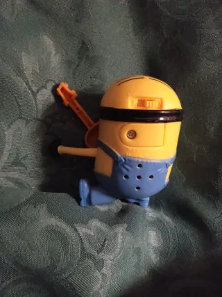 Figura de Minion de McDonald's tocando la guitarra. Un personaje divertido y coleccionable. - Color amarillo característico. - Ropa de jardinero azul. - Guitarra naranja. Pila agotada