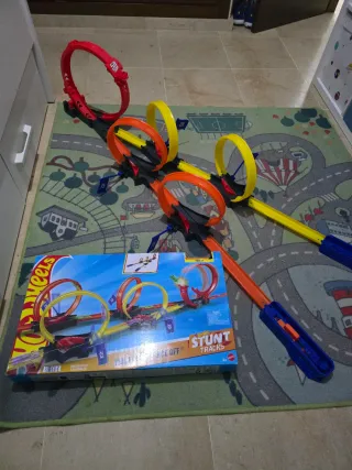 Pista de carreras Hot Wheels Stunt Tracks. - Incluye varios aros y rampas para acrobacias. - Diseñada para coches Hot Wheels -Está sin usar, con su caja. Han sido unos reyes equivocados.