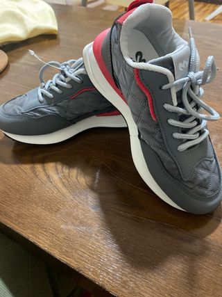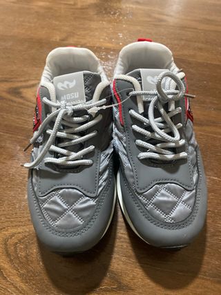 Zapatos deportivos para niños de la marca MOSU.talla 33 - Diseño acolchado en la parte delantera. - Detalles en color rojo. - Cierre con cordones.