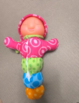 LE FALTA MECANISMO PARA LA PILA QUE LE DA LUZ!!! Peluche Gusiluz en color rosa con un diseño divertido y colorido. - Cuerpo segmentado con diferentes estampados. - Cabeza de goma con cara sonriente. - Gorro con pompón. - Brazos pequeños.