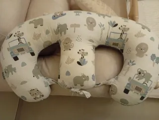 Cojín de lactancia con un divertido estampado de animales de safari, ideal para gemelos. Su diseño ergonómico ofrece soporte. - Estampado de animales: leones, jirafas, koalas, tigres, hipopótamos y elefantes. - Diseño en forma de U. - Tejido suave y confortable.