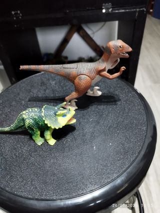 Set de dos figuras de dinosaurios. - Una de hechas le falta un trocito de cola. - Figura de dinosaurio marrón con detalles en blanco. - Figura de dinosaurio verde con detalles en amarillo. - Tal como se ven en las fotos. - Para mas figuras y coleccion en mi perfil, gracias.