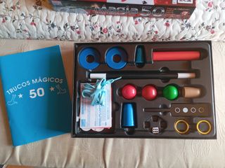 Kit de magia con 50 trucos diferentes para aprender y sorprender. Incluye varios accesorios para realizar los juegos. - Caja con 50 trucos de magia. - Incluye varita mágica. - Accesorios para diferentes ilusiones.