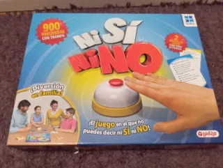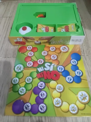 Juego de mesa Sí o No para divertirse en familia o con amigos. Incluye un tablero, fichas y un dispositivo central. - Tablero con casillas de colores. - Fichas de Sí y No. - Dispositivo central con botón. - Tarjetas con preguntas.