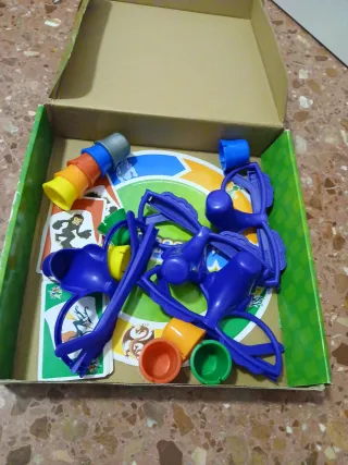 El juego está nuevo, aunque se ha usado. Juego de mesa familiar Montón de Queso. ¡No dejes que el montón se derrumbe! - Incluye piezas de ratones y discos de queso. - Base de queso con agujeros. - Caja original.
