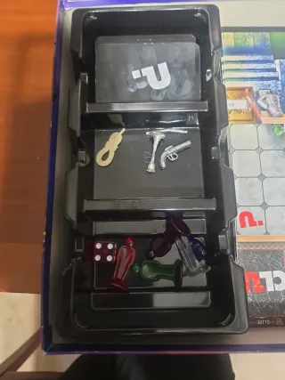 Juego de mesa Cluedo, perfecto para noches de misterio y diversión en familia. - Tablero con diseño detallado de la mansión. - Incluye todos los componentes originales del juego.