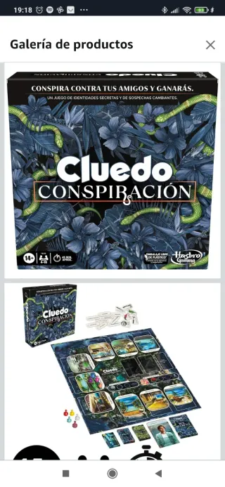 Juego de mesa Cluedo Conspiración de Hasbro. Ideal para partidas llenas de intriga. - Juego de identidades secretas y sospechas cambiantes. - Diseñado para 14+ años. - Partidas de 30-60 minutos. Nuevo sin abrir. Ideal regalo