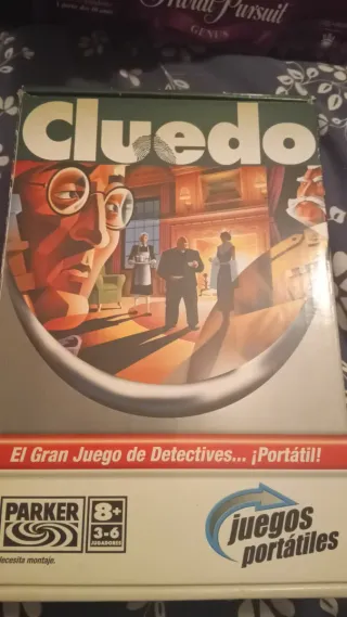 Juego de mesa Cluedo, la versión portátil del clásico juego de detectives. - Diseñado para 3-6 jugadores. - Recomendado para mayores de 8 años. - Incluye el logo de Parker y la indicación de Juegos portátiles.