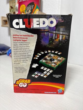 Juego de mesa Cluedo & Grab Go, perfecto para noches de misterio y diversión. - Incluye tablero de juego. - Cartas de personajes, armas y estancias. - Edad recomendada: 8+ años. - Para 2-6 jugadores. - Marca: Hasbro Gaming.