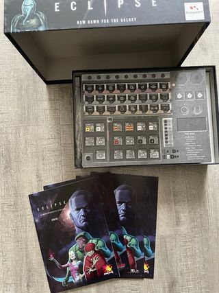 Juego de mesa Eclipse: New Dawn for the Galaxy en excelentes condiciones. Incluye todos los componentes que se muestran en las imágenes. - Juego de estrategia espacial. - Para 2-6 jugadores. - Incluye tablero, miniaturas y componentes de juego.