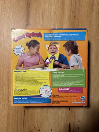 Juego de mesa Cara Splash de Hasbro Gaming. ¡Prepárate para la diversión! - Edad recomendada: 5+ años. - Número de jugadores: 2+. - Advertencia: Peligro de asfixia, no conveniente para niños menores de 3 años por contener piezas pequeñas. - Se necesita montaje y supervisión de un adulto.