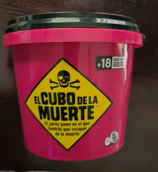 Juego de mesa El Cubo de la Muerte. - Juego de fiesta para adultos. - Temática de escapar de la muerte. - Contiene un cubo rosa con tapa negra.