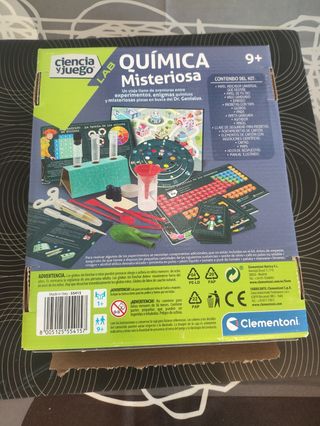 Juego de ciencia Clementoni, Química Misteriosa. Ideal para niños a partir de 9 años. Incluye numerosos componentes para realizar experimentos de forma segura. Dispone de una rueda para resolver enigmas y un misterio fascinante por resolver. El juego está nuevo, sin usar, sólo desprecintado. - Muchos componentes para experimentos seguros. - Rueda para resolver enigmas. - Misterio fascinante.
