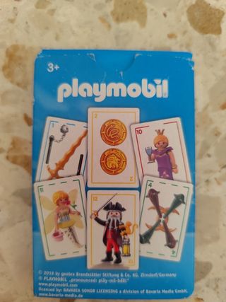 Juego de cartas Playmobil, ideal para jugar en familia. cartas con ilustraciones de personajes Playmobil. Las cartas están en perfecto estado, listas para jugar. Playmobil. - Personajes de piratas, princesas y caballeros. - Perfecto para niños a partir de 3 años.