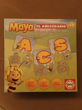 Puzzle educativo del abecedario con la personaje Maya. Ideal para aprender las letras y asociarlas con imágenes. - Incluye letras mayúsculas y minúsculas. - Fomenta el aprendizaje del vocabulario. - Diseñado para niños de 4 a 5 años.