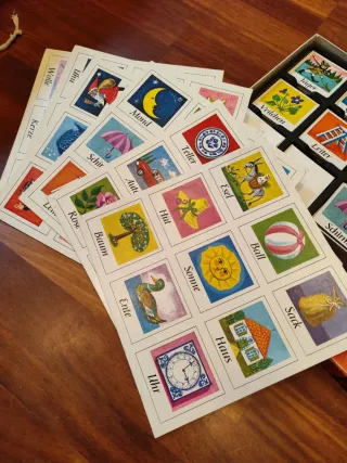 Juego educativo Montessori Primeras palabras. Incluye 150 tarjetas y un libro para enriquecer el vocabulario. - Diseñado para niños. - Fomenta el aprendizaje y la lectura.