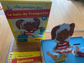 Juego de mesa Haba Le bain de Trempette (El conejito burbuja). Ideal para los más pequeños. - Juego de mesa para niños a partir de 2 años. - Ilustraciones coloridas y divertidas. - Incluye instrucciones en varios idiomas. Cómo nuevo, en su caja.