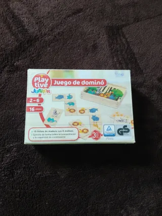 Juego de dominó infantil de la marca Playtive Junior. Incluye 15 fichas de madera con 5 motivos de animales y domino tradicional por la otra cara. Caja y manual de instrucciones. - Fichas de madera con 5 motivos. - Ejercita la concentración y la capacidad de combinación. - Para niños de 2 a 6 años.