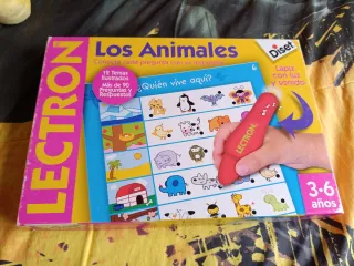 Juego educativo Lectron de Diset sobre los animales. Ideal para niños de 3 a 6 años. El artículo que se muestra es el juego educativo Lectron Los Animales de la marca Diset. Características Principales Tipo de Juego: Es un juego educativo de preguntas y respuestas diseñado para la asociación de ideas. Mecánica: Los niños deben conectar una pregunta (izquierda) con su respuesta correcta (derecha) en las láminas ilustradas. Elemento Interactivo: Incluye un lápiz especial que se ilumina y emite un sonido o melodía cuando la respuesta seleccionada es correcta, sirviendo como sistema autocorrectivo. Contenido: El juego contiene 12 temas