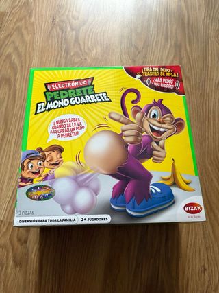 Juego electrónico Pedrete El Mono Guarrete. ¡Tira del dedo de Pedrete para que se infle su trasero! ¿Cuánto tiempo podrá aguantar? ¡Nunca sabes cuándo se le va a escapar un pedo! - Incluye: 1 mono, 1 cola de mono, 1 ruleta giratoria. - Edad recomendada: +4 años. - Advertencia: Riesgo de asfixia - Contiene piezas pequeñas. No recomendado para niños menores de 36 meses.