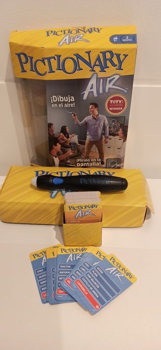 Juego de mesa Pictionary Air, ideal para divertirse dibujando en el aire. - Incluye lápiz interactivo. - Tarjetas con palabras para dibujar. - Caja original.
