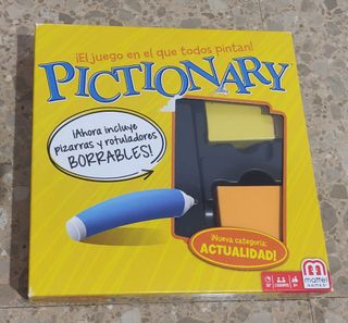 Juego de mesa Pictionary de Mattel. ¡El juego en el que todos pintan! - Incluye pizarras y rotuladores borrables. - Nueva categoría: Actualidad. - Para 30+ minutos de juego. - Para 2-6 jugadores.