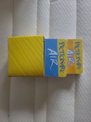 Pictionary Air Nuevo, sin utilizar. Pueden verse las tarjetas todavia precintadas. Ideal para regalar. Para jugar en família al pictionary en el aire. Muy diverttido! Fue un regalo y ya teniamos uno. Ganga.