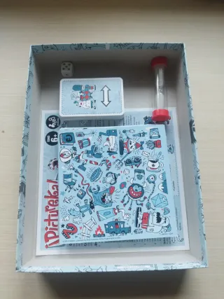 Juego de mesa Pictureka! con cartas de misión. - Incluye tablero de juego. - Cartas de misión. - Dados. - Reloj de arena.