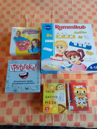 Lote de juegos de mesa variados, ideal para toda la familia. Se escuchan ofertas serias. - Rummikub Junior - Pictureka! - ¿Quién es Quién? - Taco Gatito Pizza - Misticat