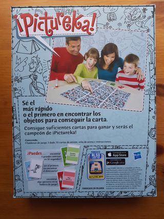 Juego de mesa Pictureka! de Hasbro, en perfecto estado. Es ideal para jugar en familia. - Incluye 9 tableros de juego, 55 cartas de misión, reloj de arena e instrucciones. - Para 2 o más jugadores. - Recomendado para mayores de 6 años.