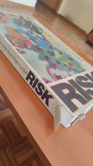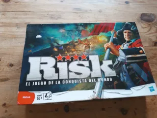 El clásico juego de mesa Risk, El Juego de la Conquista Estratégica. - Edición en español. - Para 2-5 jugadores. - Edad recomendada: 10+. Juego de mesa RISK clásico. Completo y totalmente jugable. Todas las piezas, cartas y tablero incluidos. La caja tiene desperfectos/rajas en los laterales por el uso, pero el contenido está en buen estado y el juego funciona perfectamente. Ideal para jugar en familia o con amigos. Precio negociable.